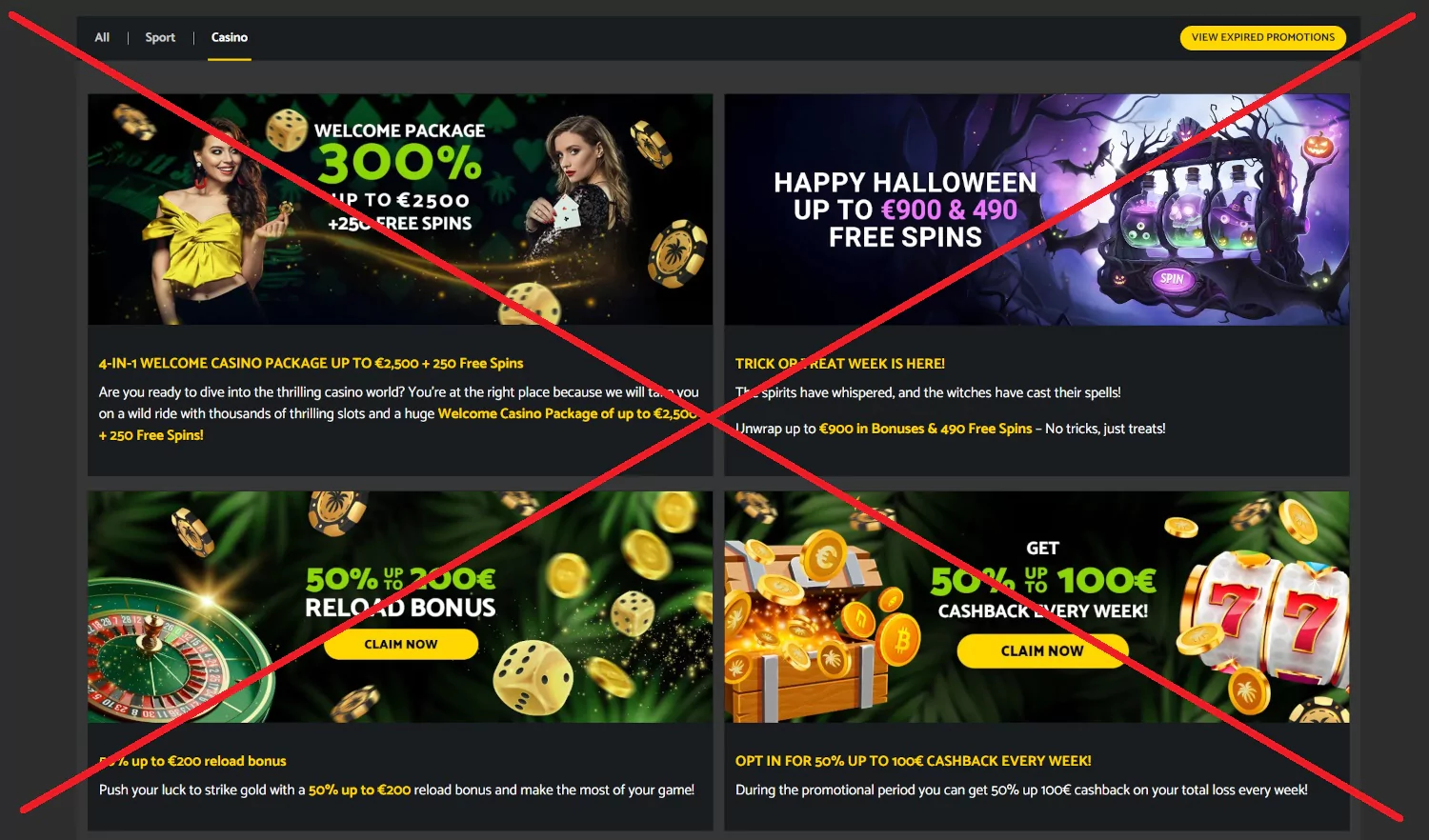 - Onduidelijke of onvoordelige voorwaarden die in het nadeel van de speler uitpakken