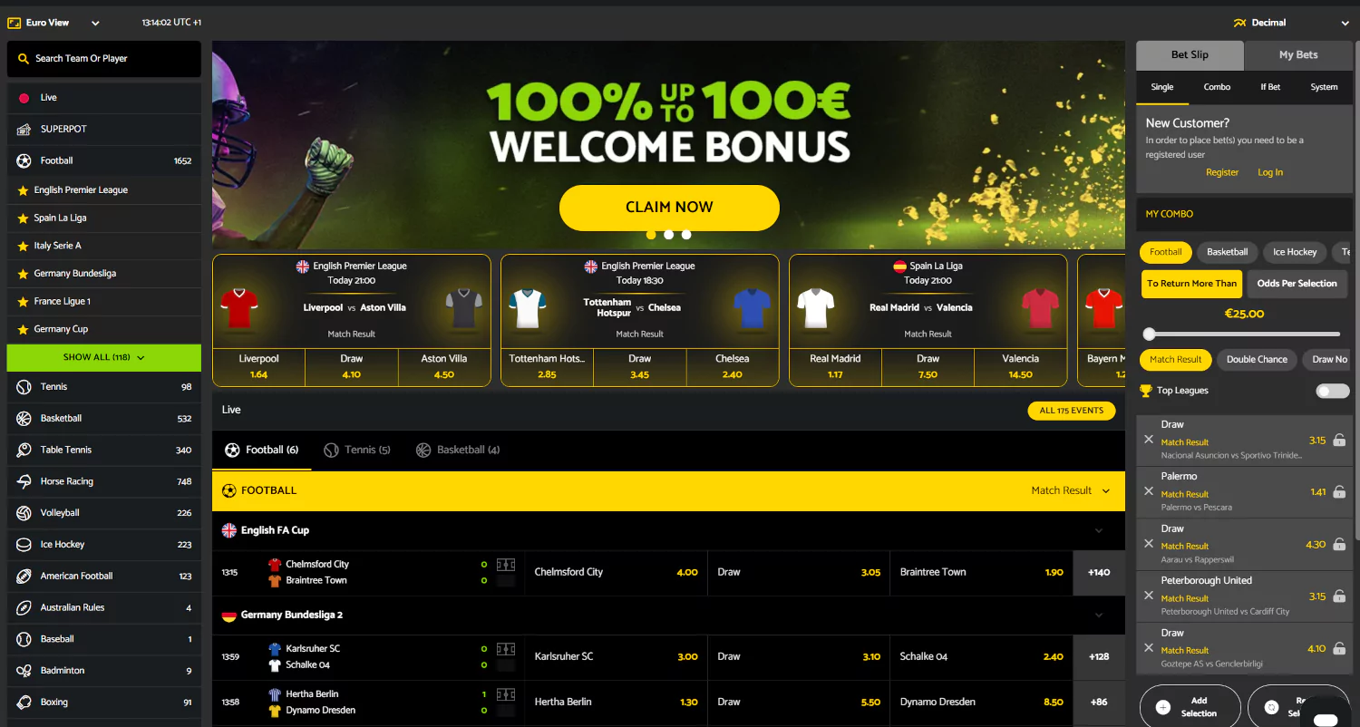 Het aanbod omvat ruim 40 sporten deze filter je via: Normale Sprots, Winter Sports, Motor Sports, je vindt er met dagelijks duizenden voetbalmarkten (o.a. Eredivisie, Champions League) en ruime dekking voor tennis, Formule 1, UFC, wielrennen, basketbal en golf.