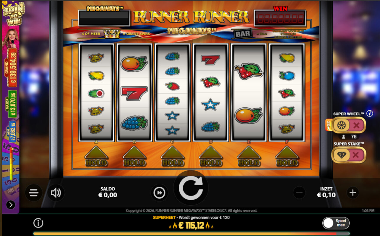 Runner Runner Megaways is een online casino spel Stakelogic die het vertrouwde klassieke kastgevoel combineert met de variatie van Megaways. Je krijgt dus een herkenbaar fruitthema, maar met moderne volatiliteit en piekwinsten die je bij een standaard fruitkast meestal niet ziet.