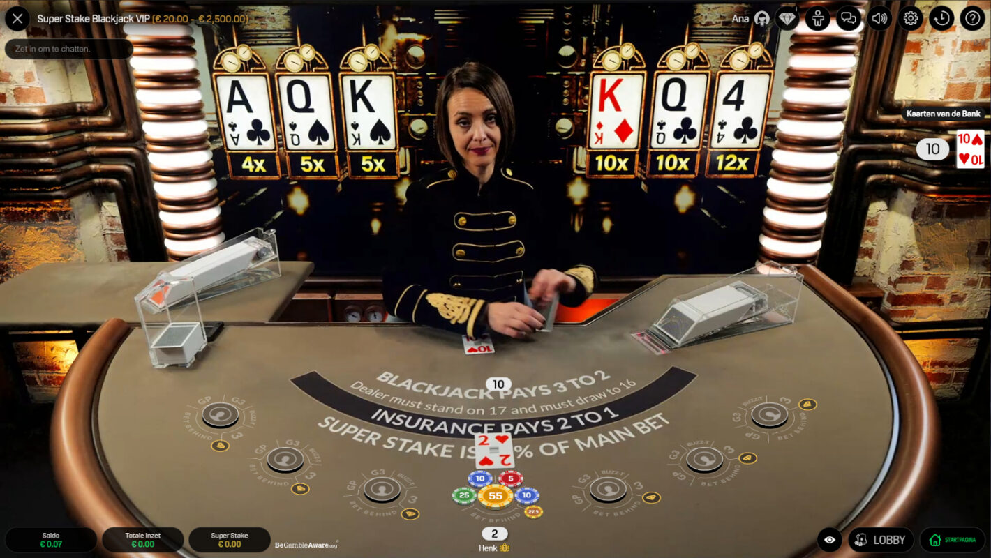 Super Stake Blackjack speel je bij online casino’s uit Nederland die Stakelogic Live aanbieden, zoals Unibet, Kansino en Jack’s.